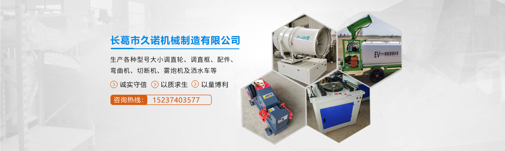長(zhǎng)葛市久諾機(jī)械制造有限公司(長(zhǎng)葛市雙箭機(jī)械廠(chǎng)旗下公司)位于長(zhǎng)葛市老城鎮(zhèn)崗張工業(yè)區(qū),公司產(chǎn)品擁有自己的品牌“金達(dá)”,是一家集機(jī)械產(chǎn)品研發(fā)、生產(chǎn)、營(yíng)銷(xiāo)為一體的科技實(shí)體企業(yè)。主要生產(chǎn)6輪、7輪、8輪、重6輪、重7輪、重8輪調(diào)直框、調(diào)制輪、配件、彎曲機(jī)、切斷機(jī)、霧炮機(jī)及灑水車(chē)等。